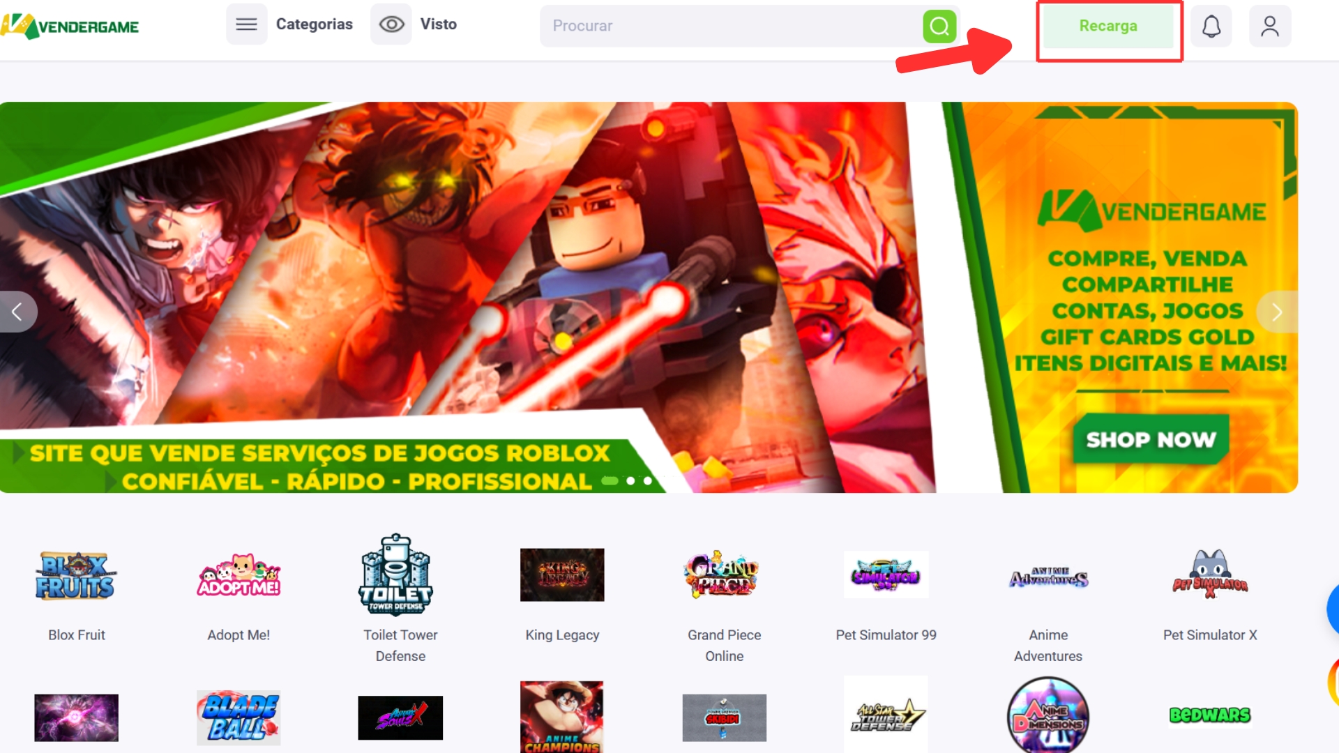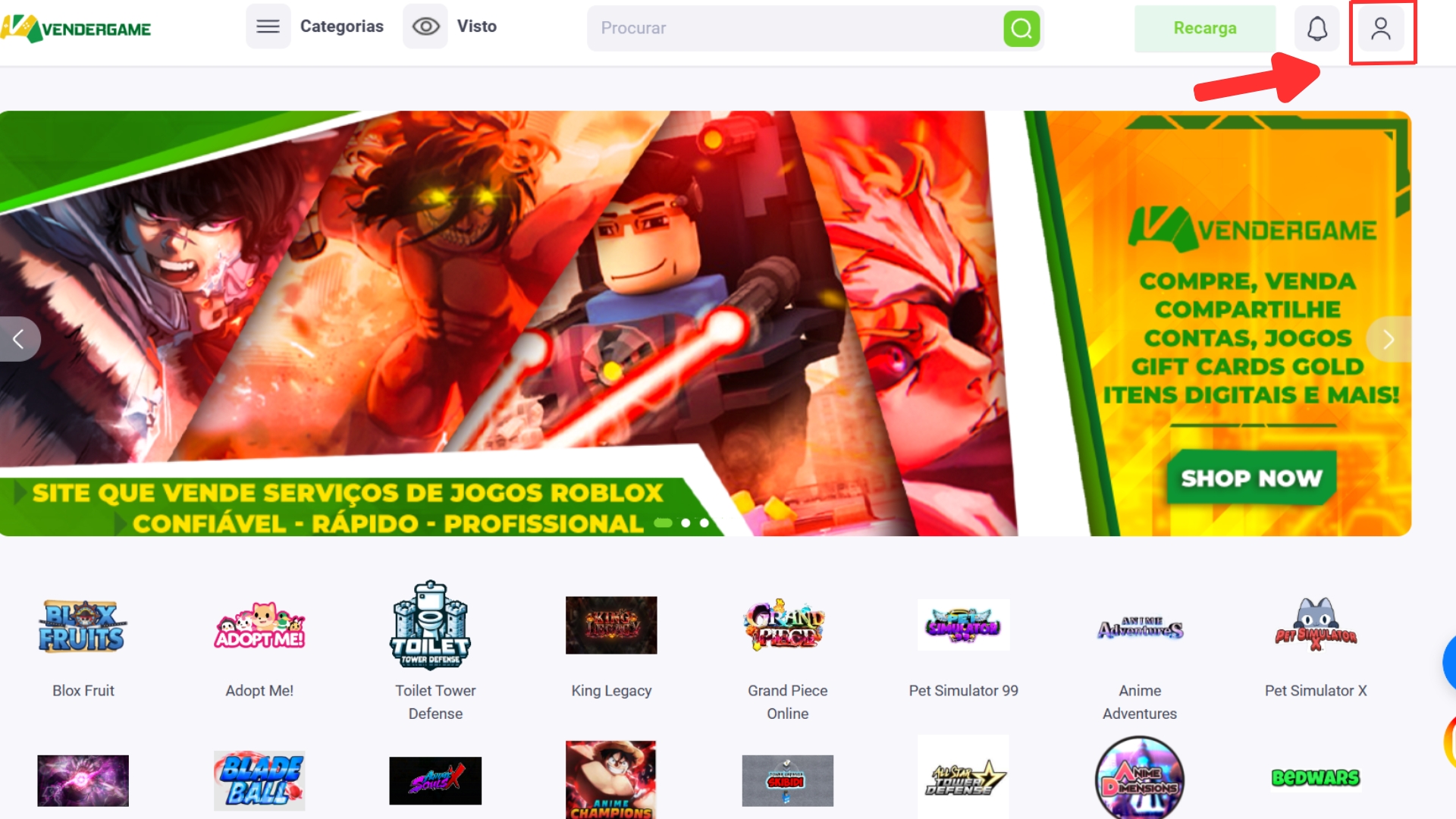 Para comprar no Vendergame, você precisará registrar uma conta e depositar dinheiro nessa conta