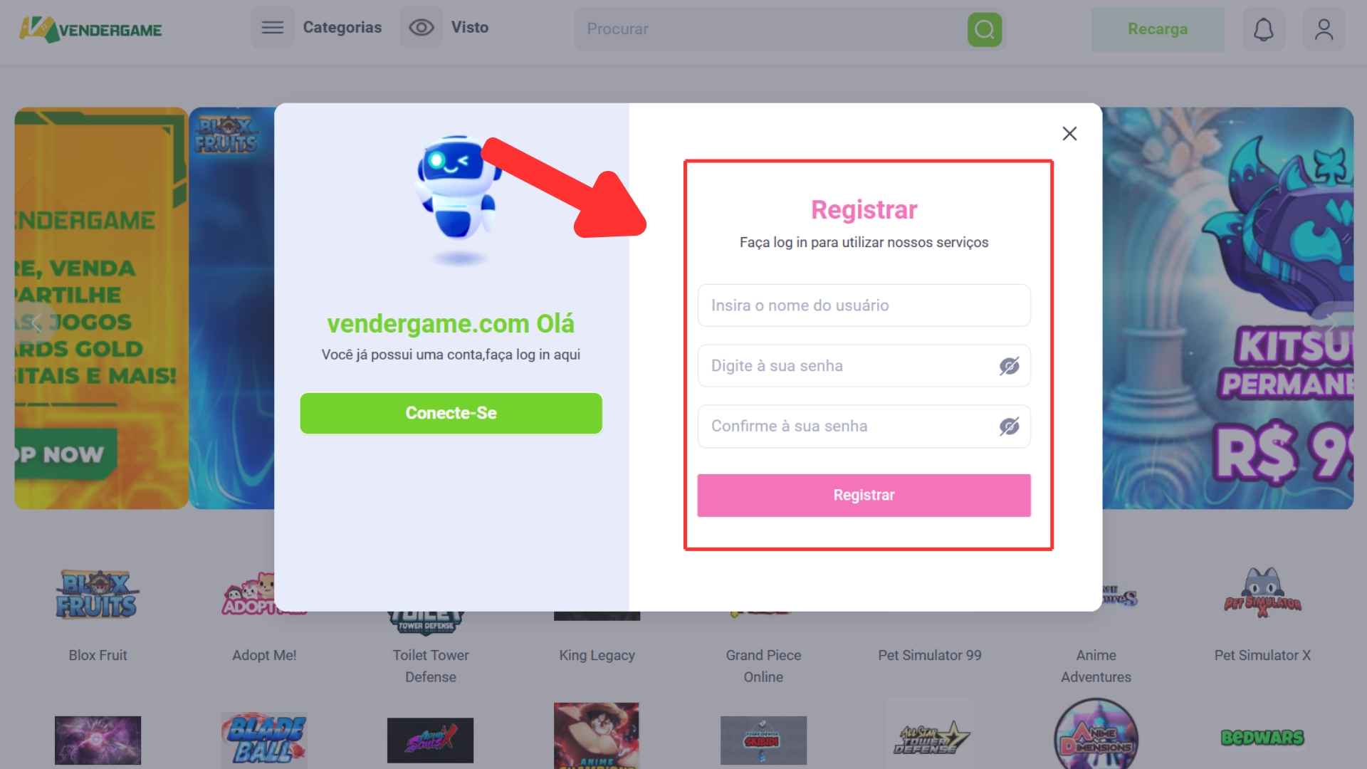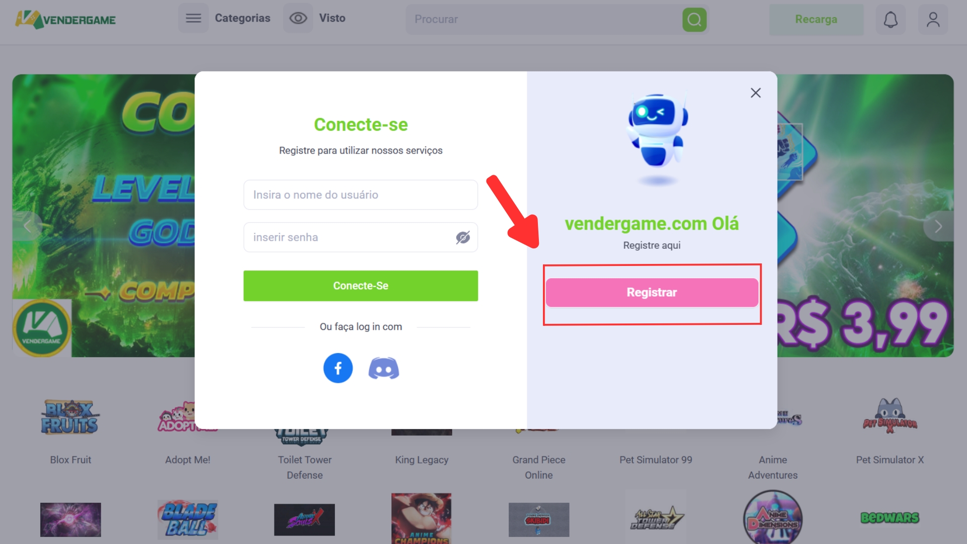 I. Como registrar uma conta no Vendergame:
