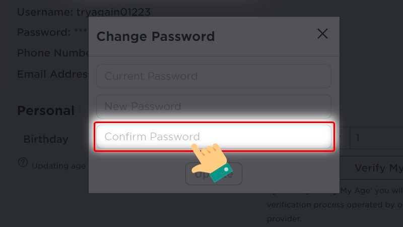 Passo 6: Confirme a nova senha na seção Confirmar senha.
